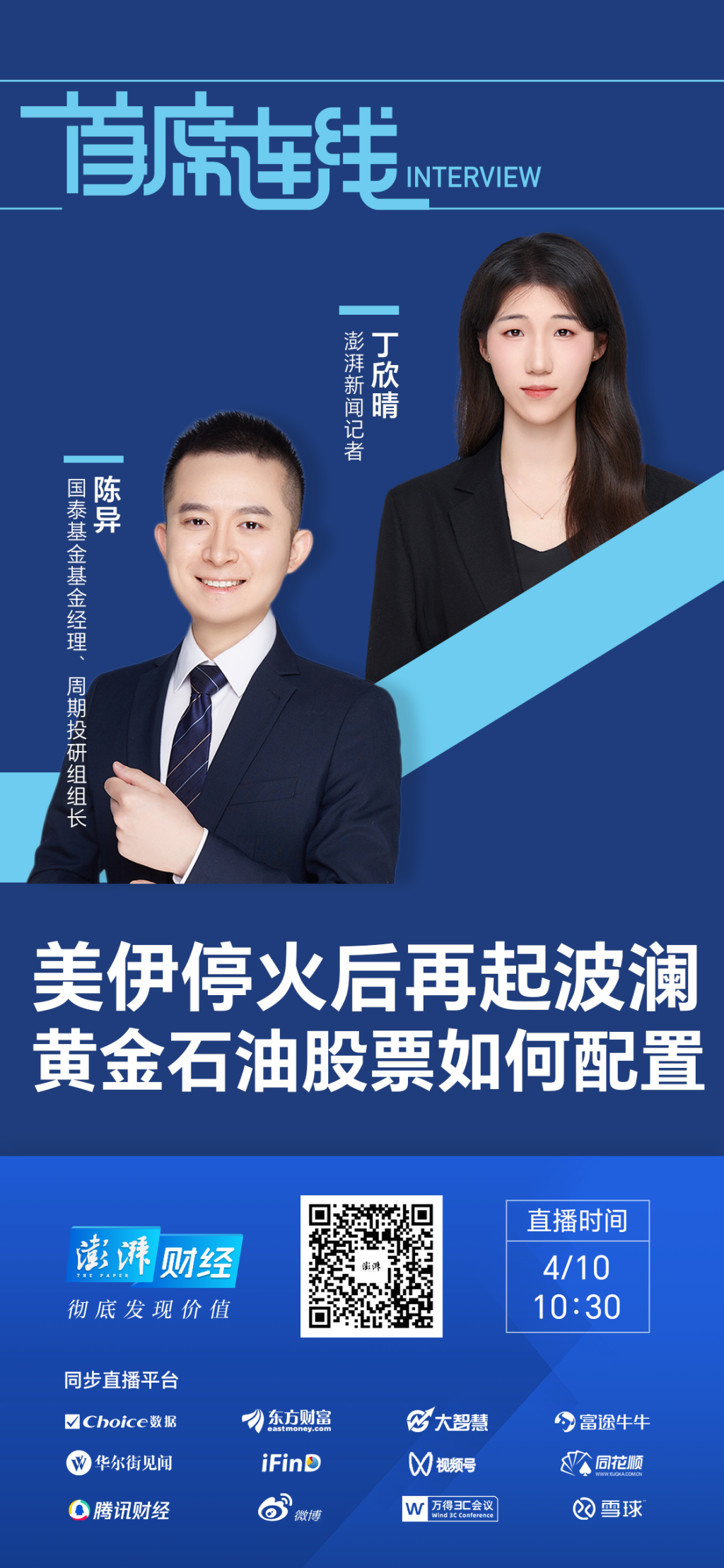 在节目中,陈异对油价的中长期走势给出了客观判断:即便局势顺利缓和,油价中枢也难以回到战前水平。他表示,战争前的油价中枢大约在60美元/桶,而战后无论谈判进展如何,油价中枢都会高于这一水平。原油或将长期存在风险溢价。